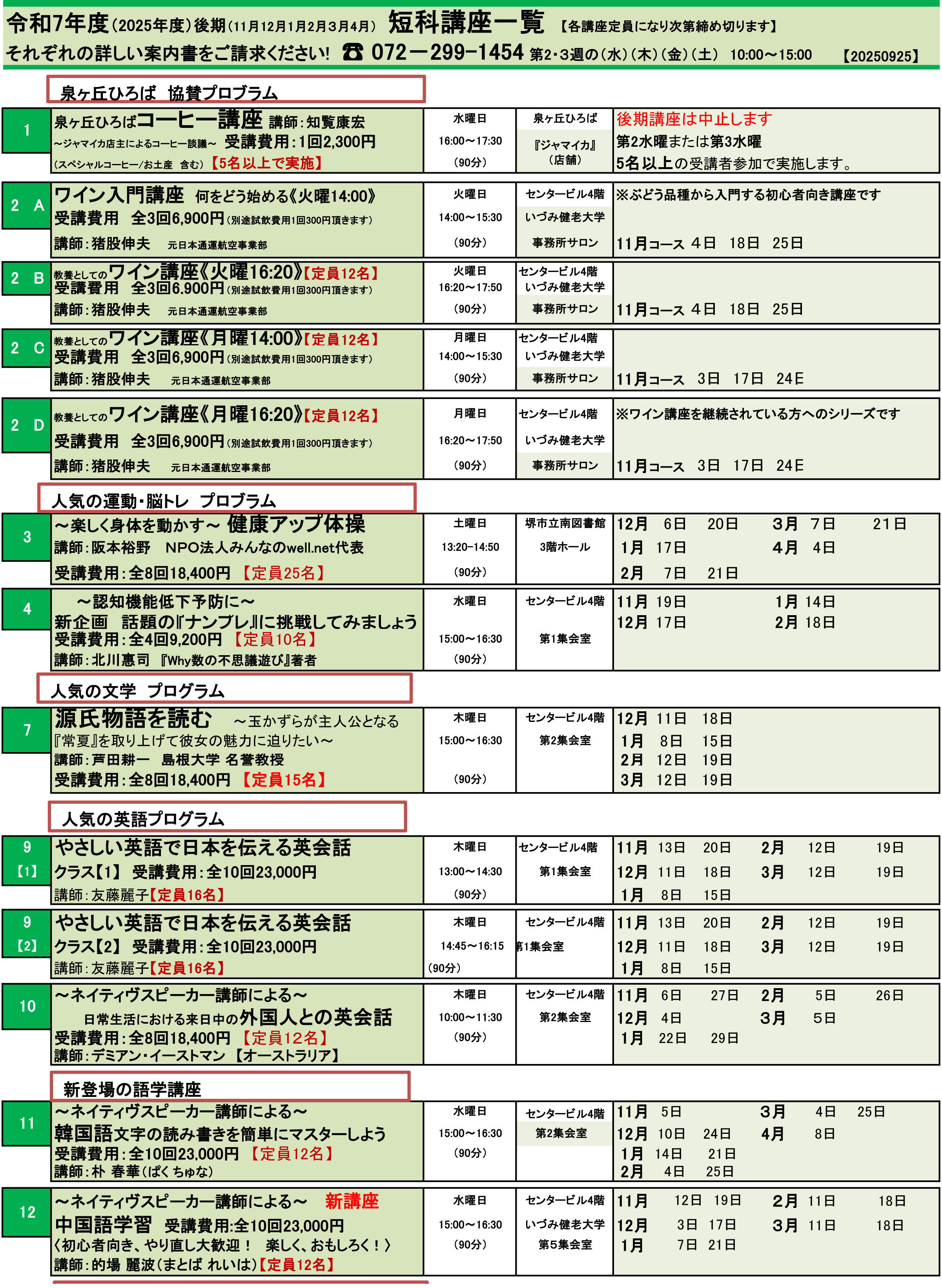 番号の講座が開講しています