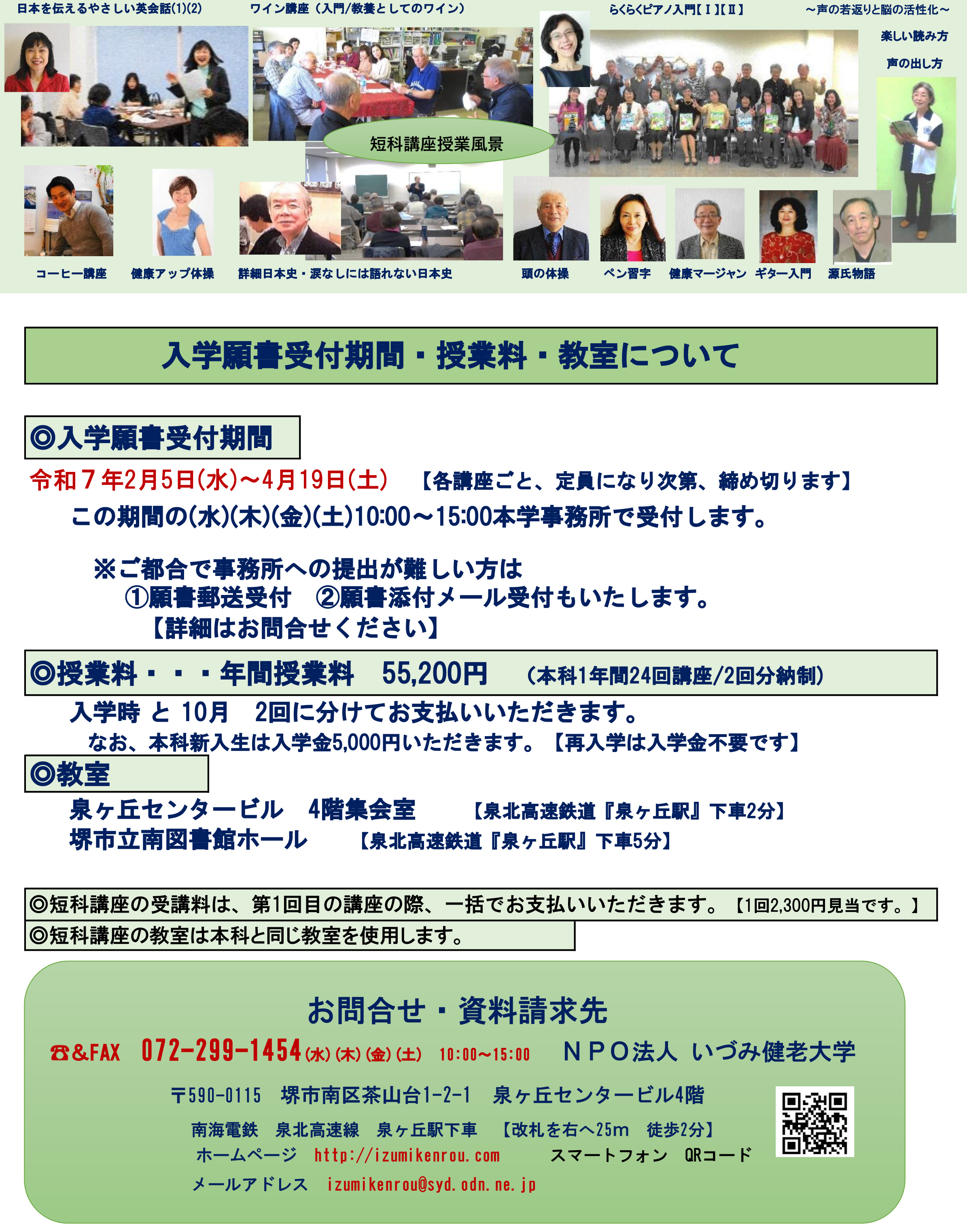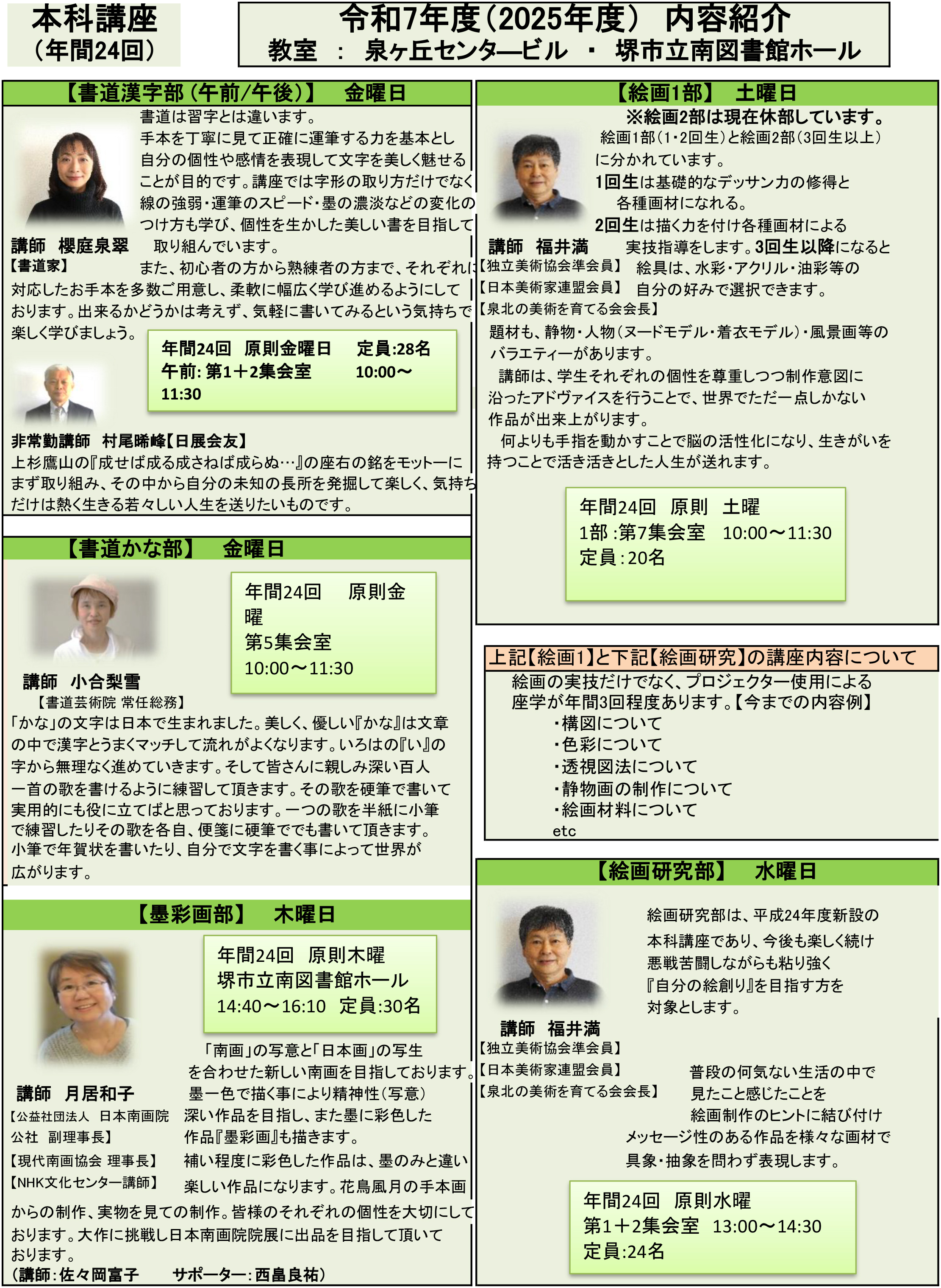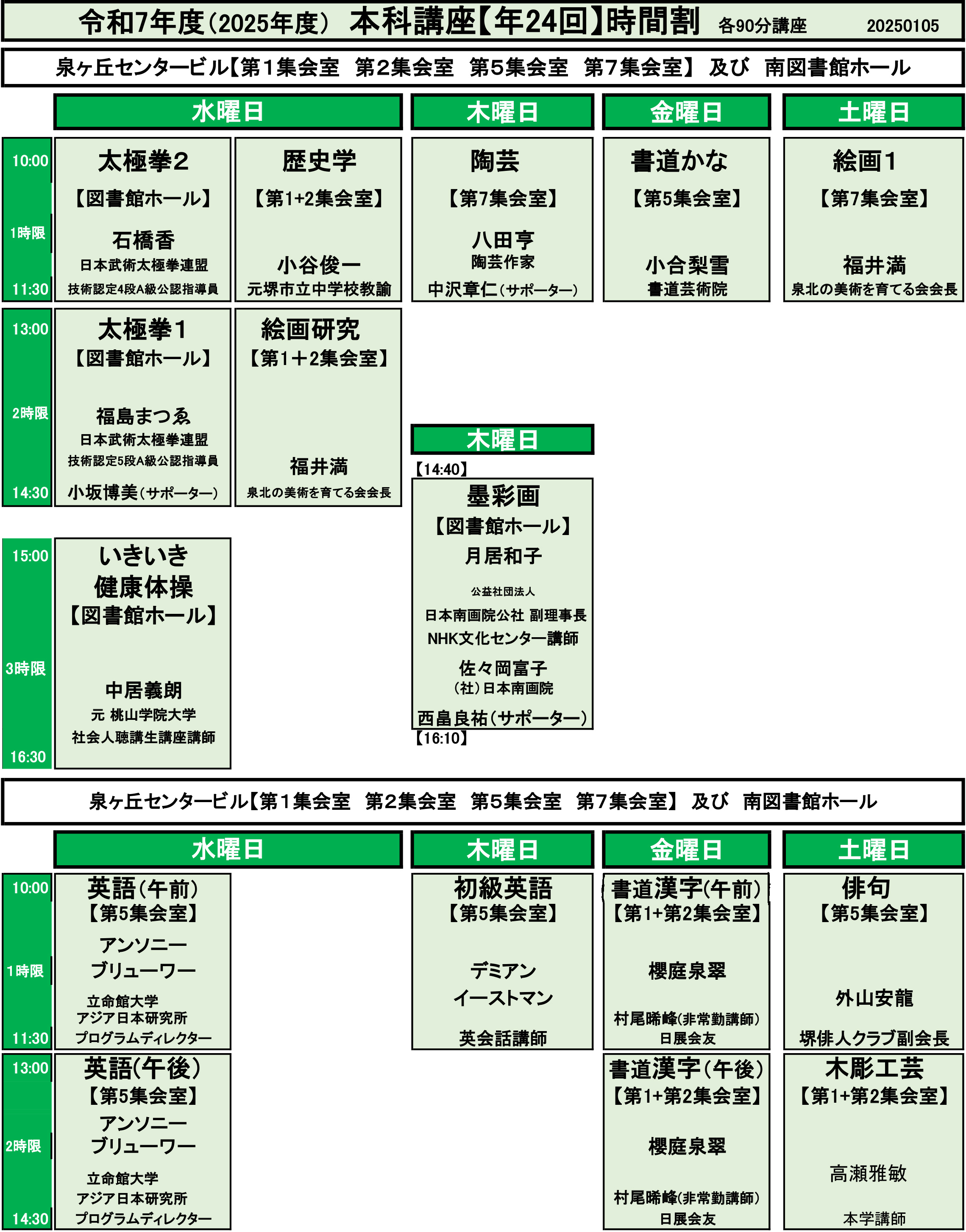 緑色の部分が開講日です
