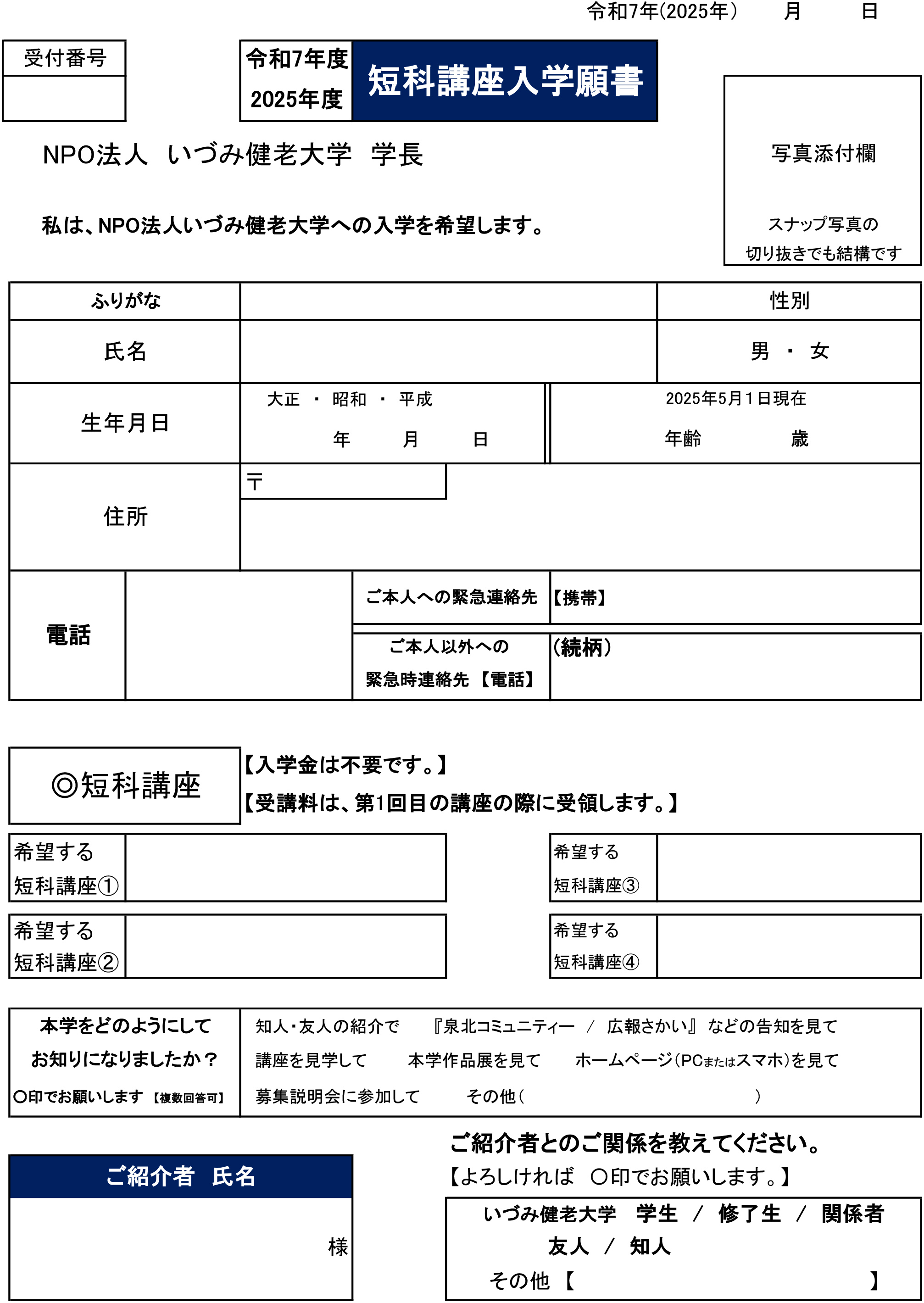 番号は短科講座番号です