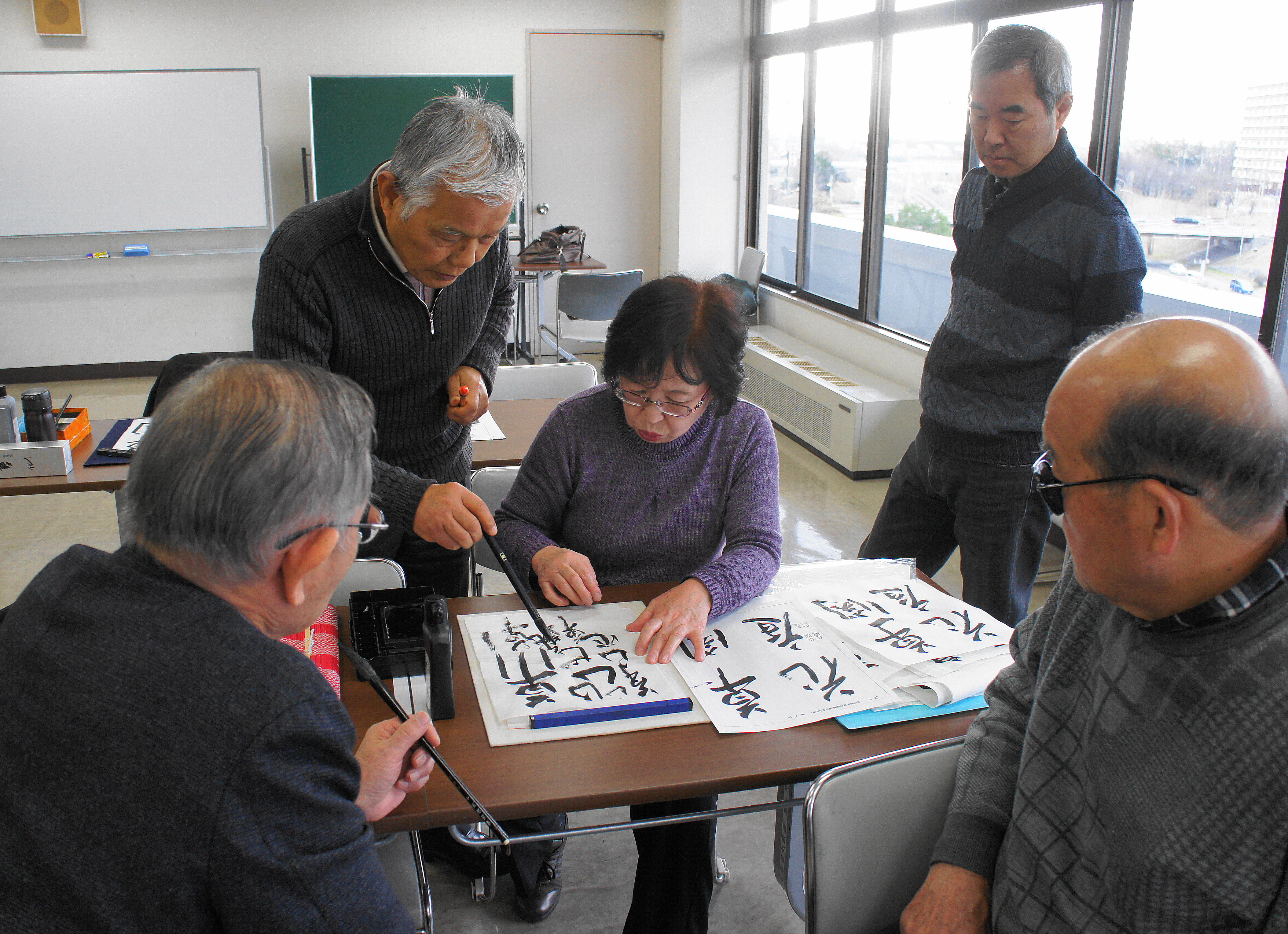 手本を丁寧に見て正確に運筆する力を基本とし自分の個性や感情を表現して文字を美しく魅せることが目的です。講座では字形の取り方だけでなく線の強弱・運筆のスピード・墨の濃淡などの変化のつけ方も学び、個性を生かした美しい書を目指して取り組んでいます。