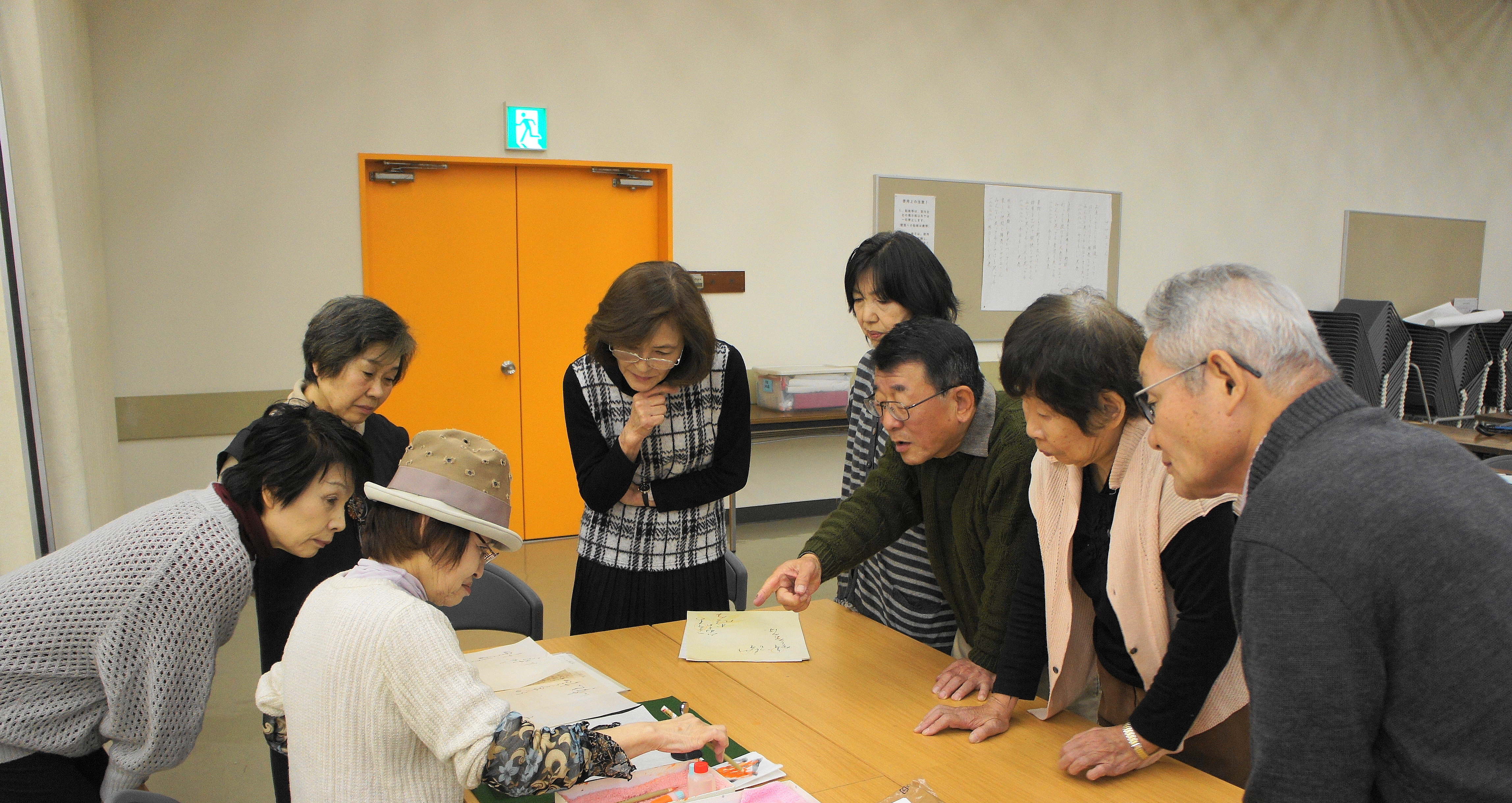 「かな」の文字は日本で生まれた、美しく、優しい『かな』は文章の中で漢字とうまくマッチして流れがよくなります。いろはの『い』の字から無理なく進めていきます。そして皆さんに親しみ深い百人一首の歌を書けるように練習していただきます。その歌を硬筆で書いて実用的にも役に立てればと思っております。一つの歌を半紙に小筆で練習したりその歌を各自、便箋に硬筆ででも書いて頂きます。小筆で年賀状を書いたり、自分で文字を書く事によって世界が広がります。