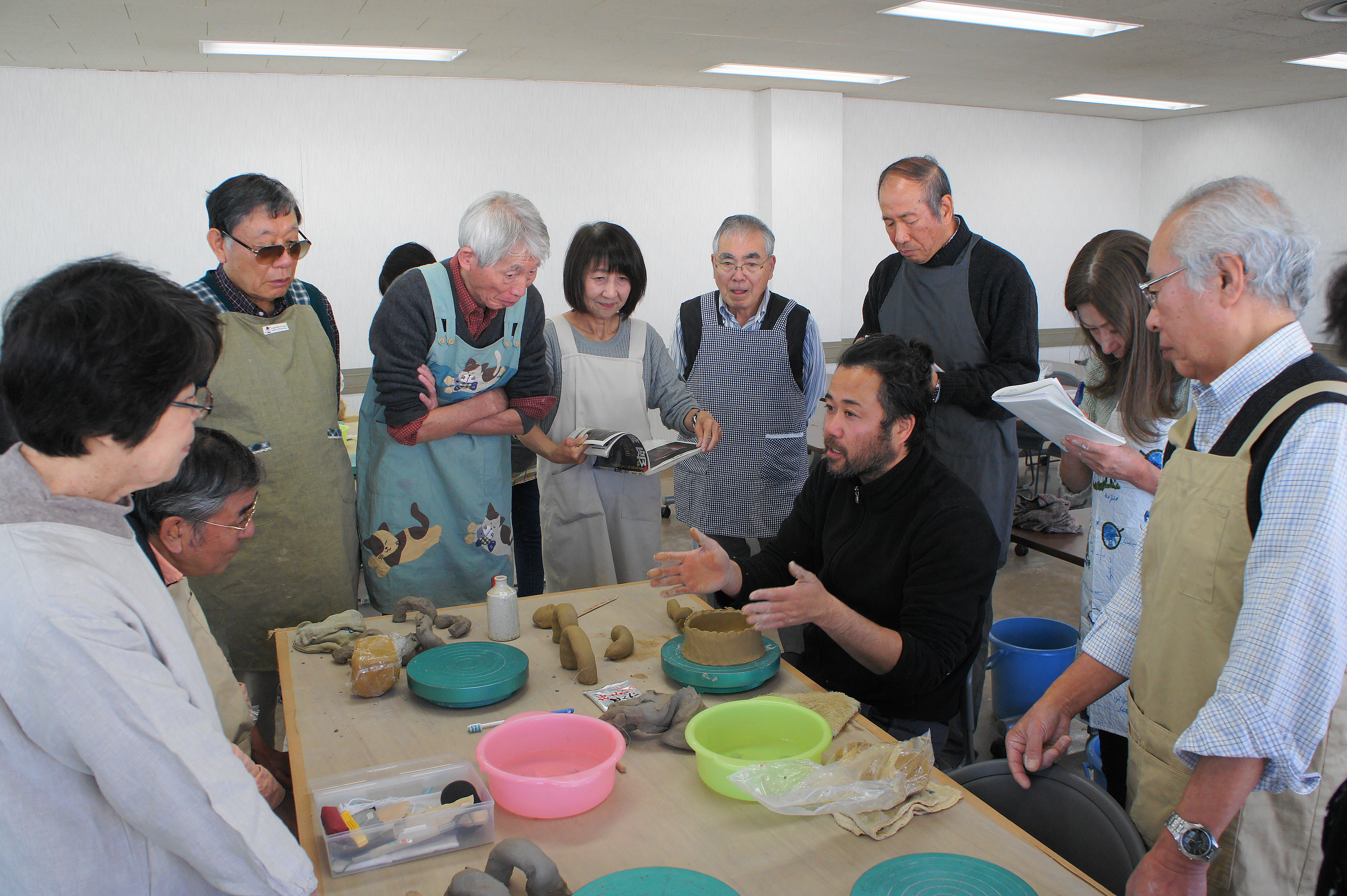陶芸部では基礎的な技法から応用の装飾方法まで幅広く紹介しながら日常で使用する食器を中心にカリキュラムを進めてまいります。陶芸の面白さは、何もないところから掌で積み上げて形にしていく楽しみです。最初は誰でも上手に作れませんが、上達していくのが自分でもよく感じていただける事と思います。また、それを使ってみると不思議と盛り付けも楽しく思えてくるものです。初心者大歓迎!やさしく指導します。